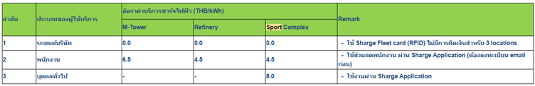 ค่าบริการสถานี Bangchak Head Office กรณีพนักงานใช้งานผ่าน App ReverSharger