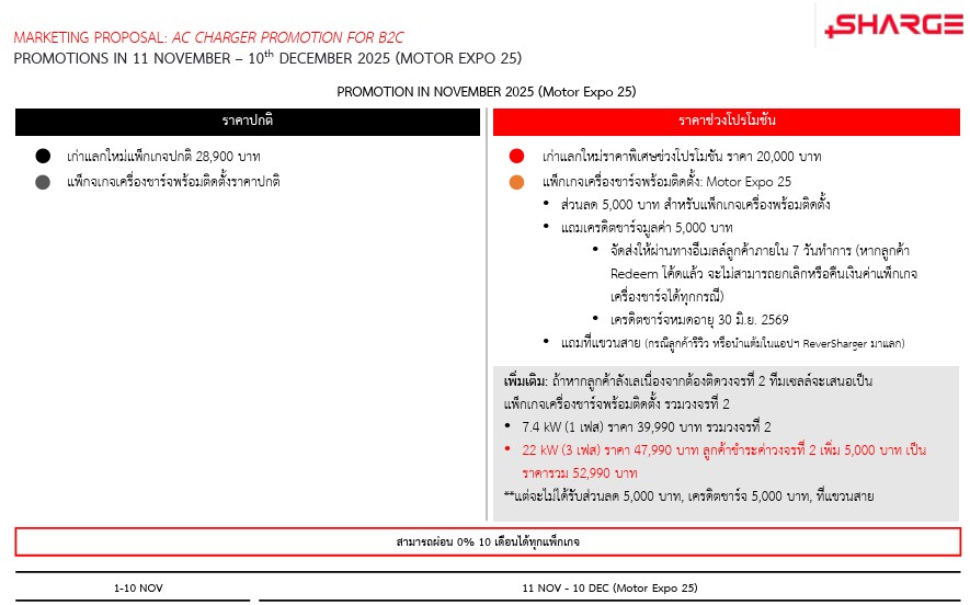 - โปรโมชันขายเครื่อง: Motor Expo 25 โดยเริ่มตั้งแต่วันที่ 11 พ.ย. 68 - 10 ธ.ค. 68