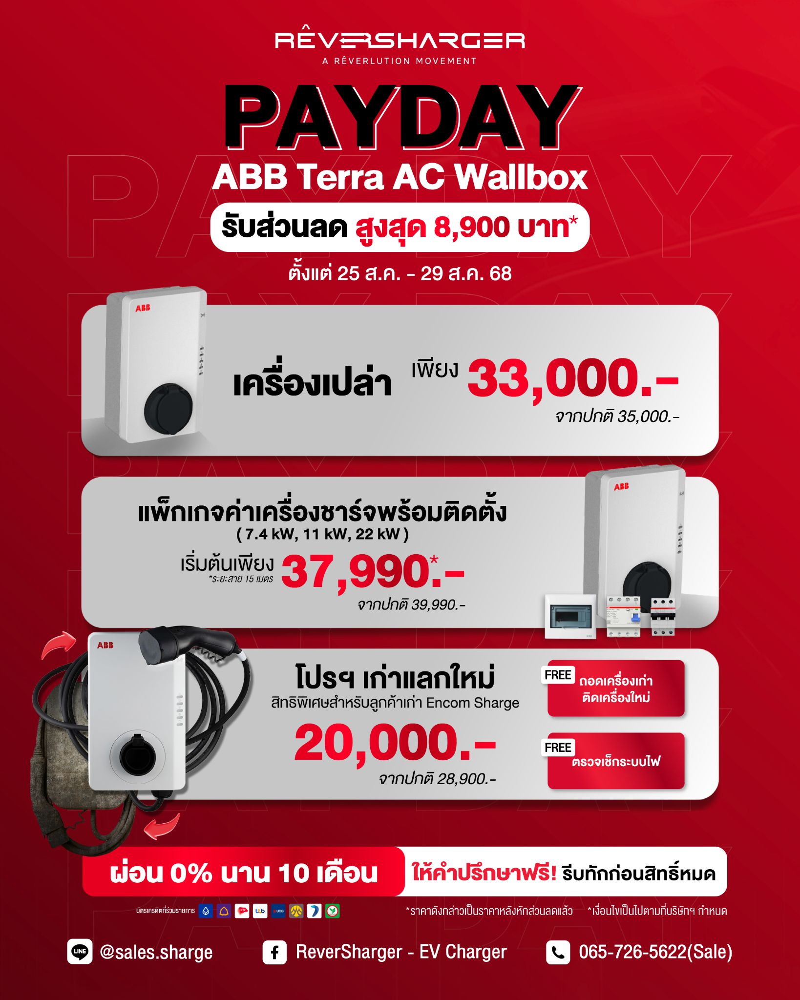 • ส่วนลดสามารถใช้ได้กับแพ็กเกจเครื่องชาร์จพร้อมติดตั้งราคาปกติเท่านั้น