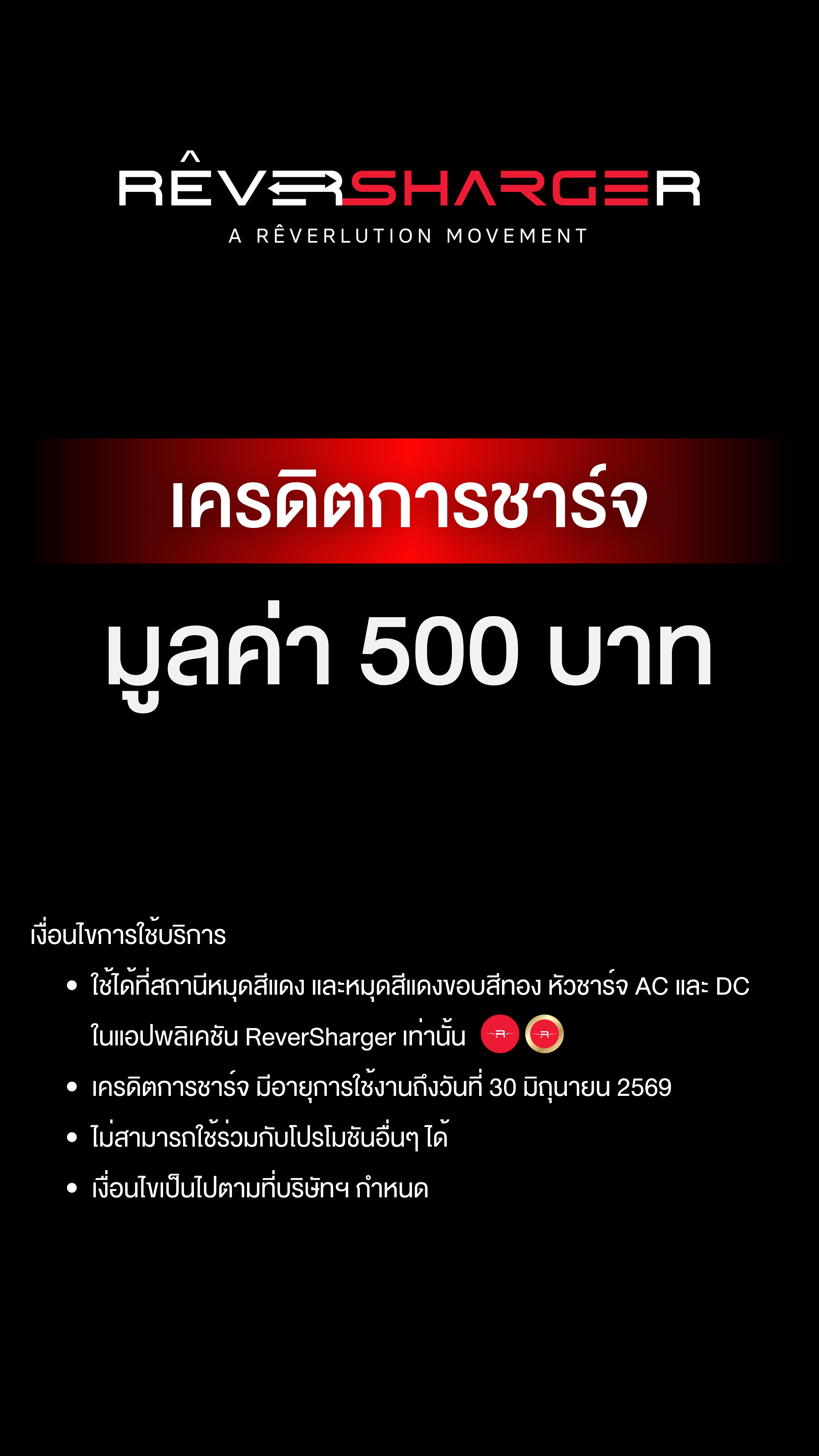 - เครดิตชาร์จมีอายุการใช้งานถึงวันที่: 30 มิถุนายน 2569