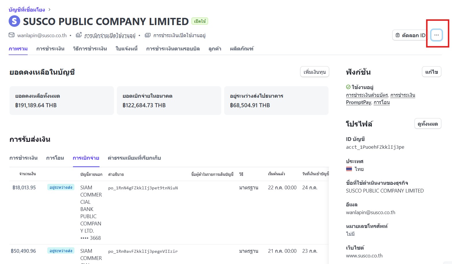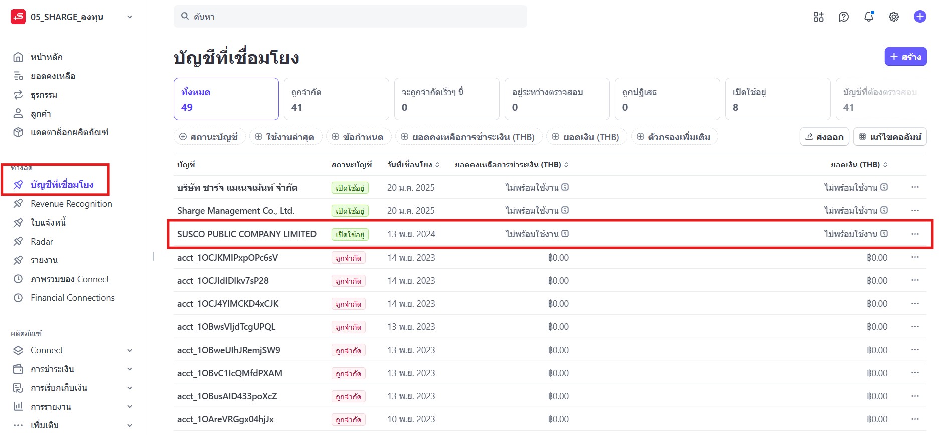 1. ตรวจสอบลูกค้าใช้บริการสถานีใดในระบบ CMS หากเป็นการใช้บริการสถานีปั้ม Susco จากนั้นเข้าสู่ระบบ Stripe เพื่อเลือกกระเป๋า 05_SHARGE_ลงทุน