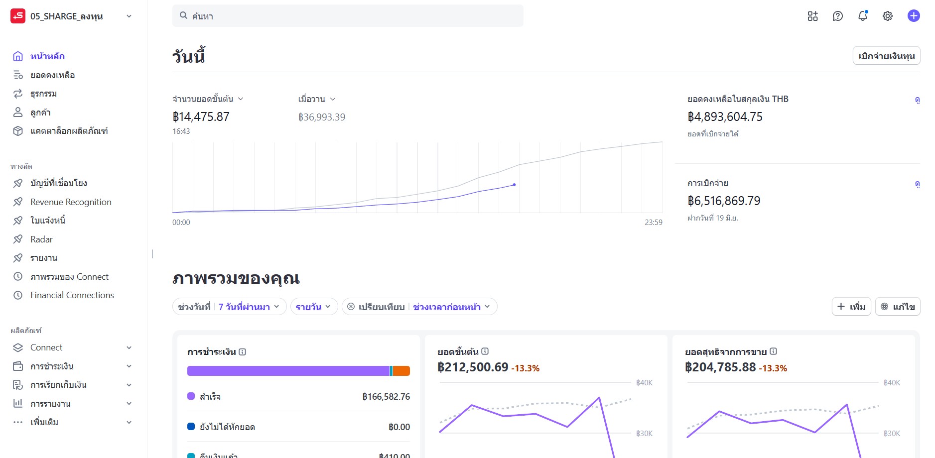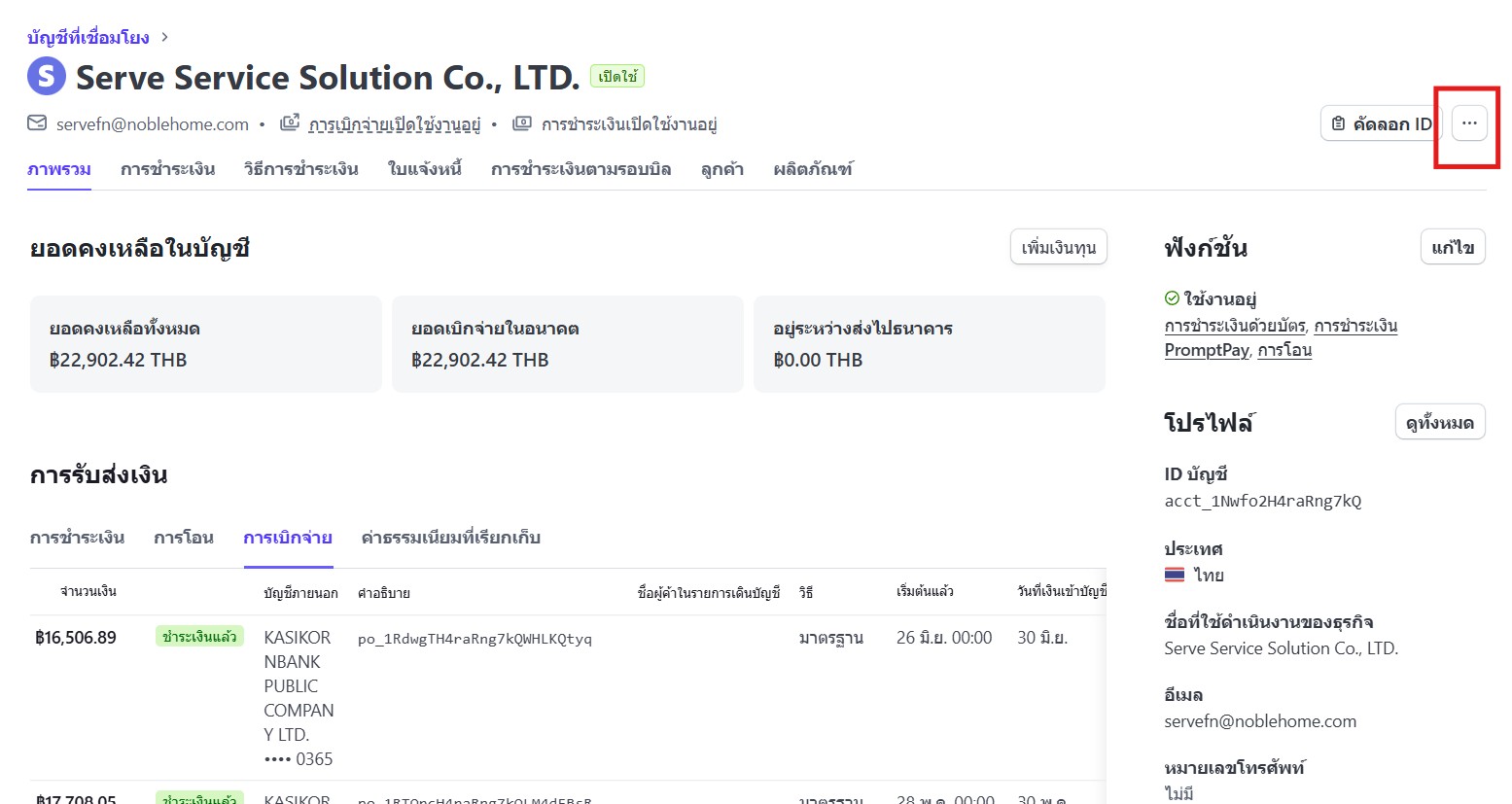 1. ตรวจสอบลูกค้าใช้บริการสถานีใดในระบบ CMS หากเป็นการใช้บริการสถานีของ SERVE Service Solution จากนั้นเข้าสู่ระบบ Stripe เพื่อเลือกกระเป๋า 05_SHARGE_ลงทุน