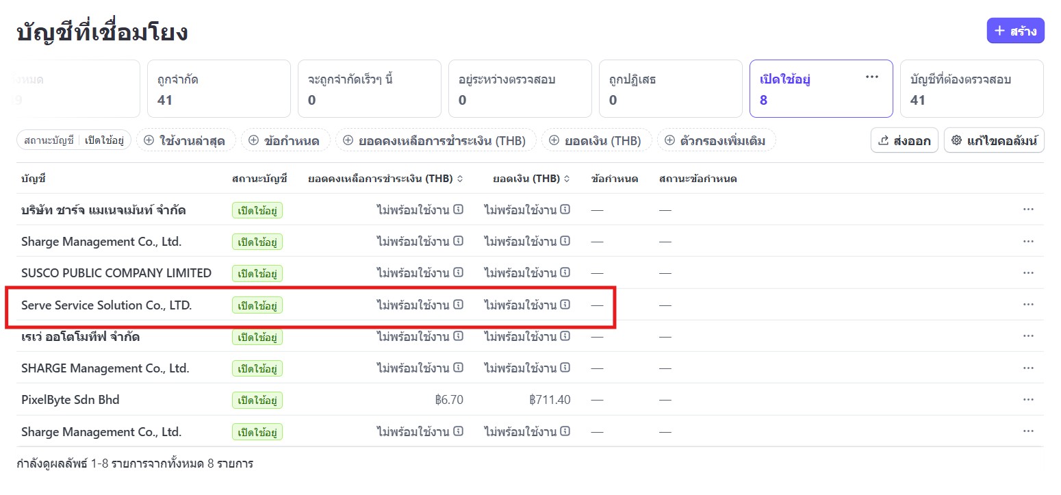 สำหรับการตรวจสอบสถานะการชำระเงินของ SERVE Service Solution โดยมีสถานีดังนี้