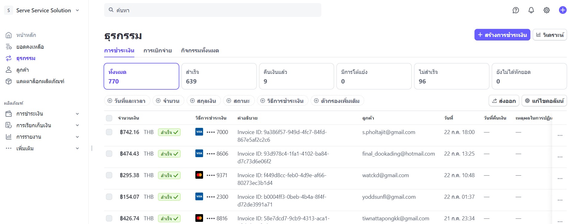 - สถานะการชำระเงิน ( สำเร็จ / ไม่สำเร็จ โดยระบบจะแสดงเหตุผล / ยังไม่เสร็จสิ้น / ปรับคืน / คืนเงิน / คืนเงินบางส่วน)