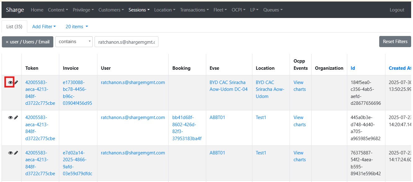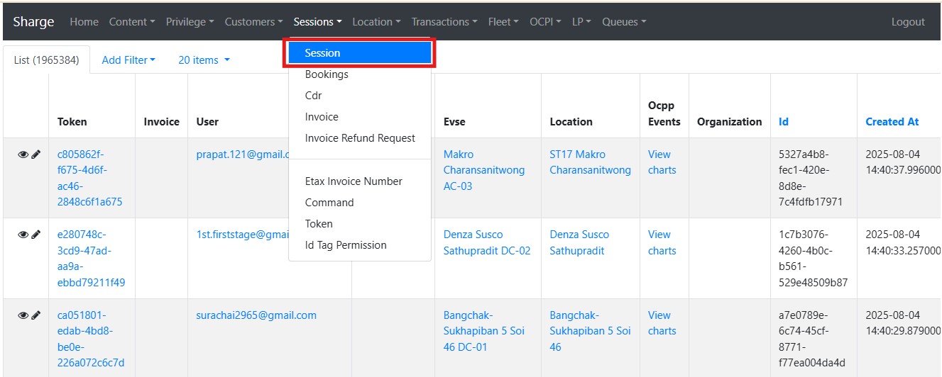 ตรวจสอบข้อมูลเกี่ยวกับประวัติการใช้งานสถานีชาร์จทั้งหมด