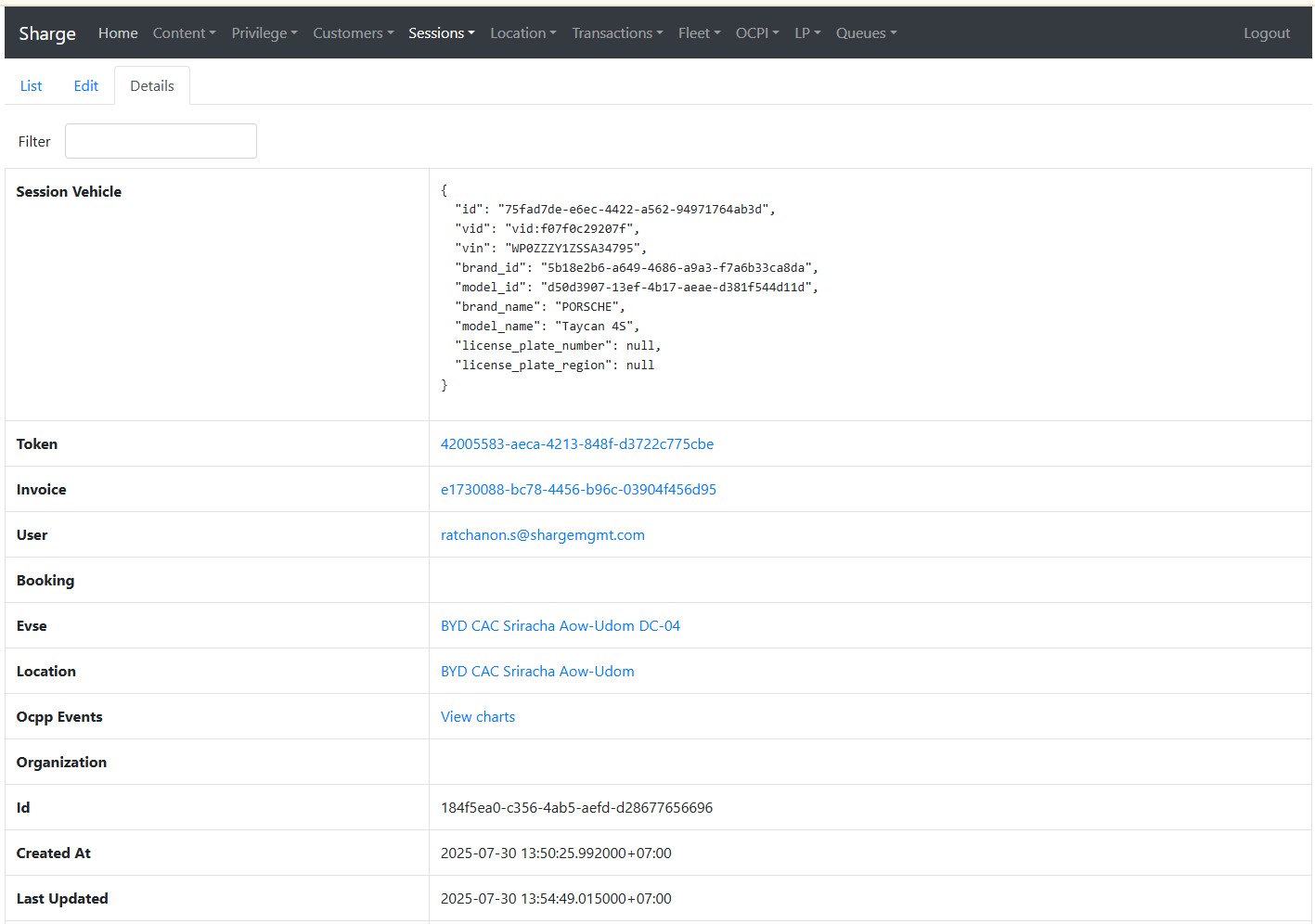 Session Vehicle : ข้อมูลที่ Link มาจาก Customers - Car