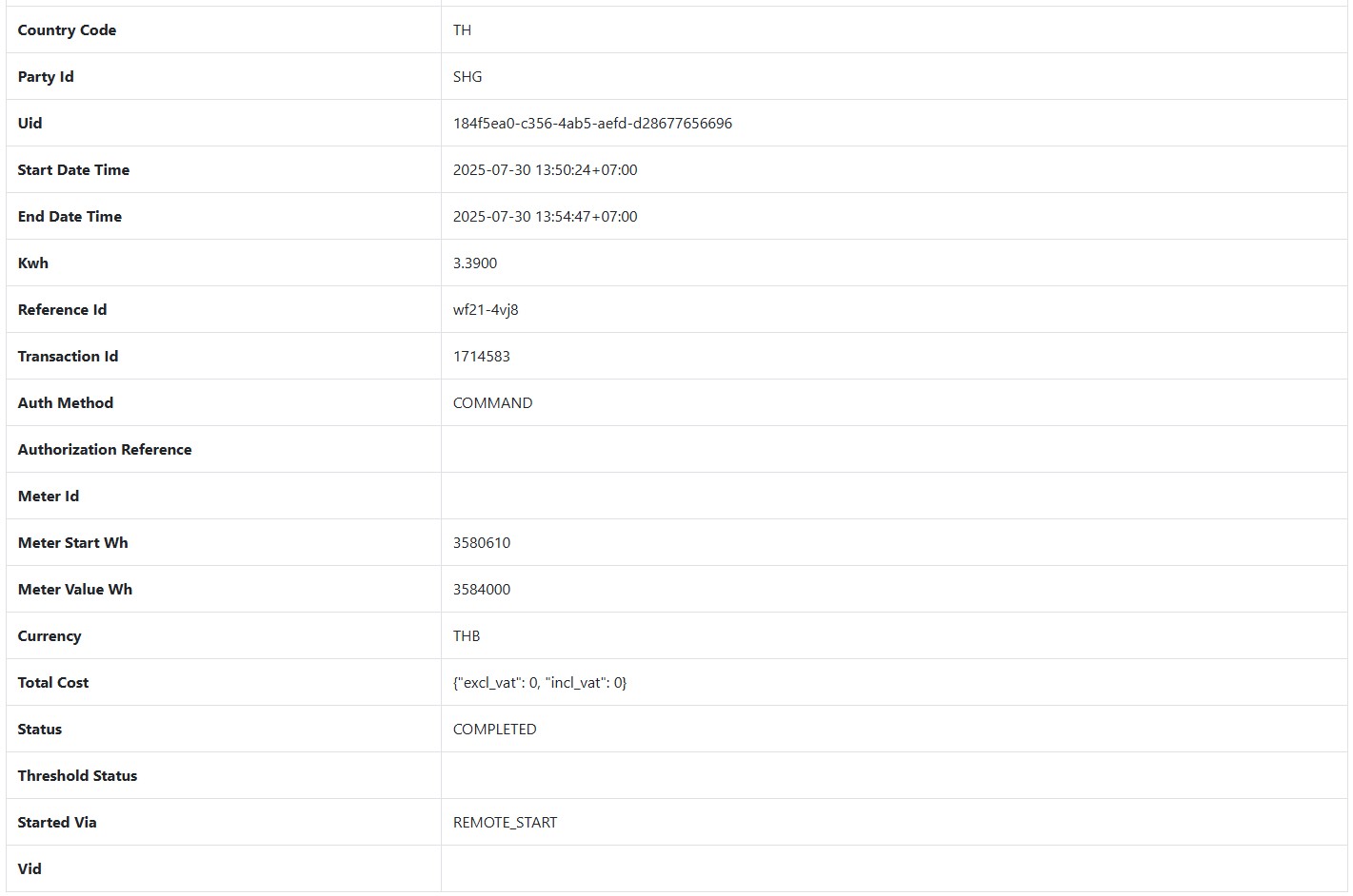Started Via : เริ่มใช้งานแบบใด เช่น REMOTE_START / PLUG_AND_CHARGE
