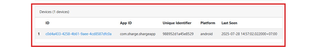 6. กรอบสีแดงที่ 3 คือ Devices จะระบุเครื่องมือถือ ที่ User เคยลงทะเบียนเข้าใช้งาน