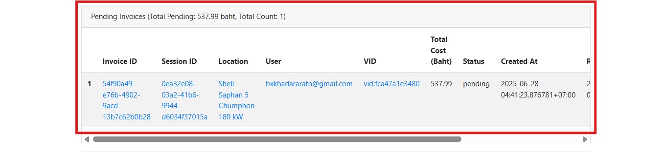 7. กรอบสีแดงที่ 4 คือ Pending Invoices จะระบุ Invoice ทั้งหมดที่ค้างชำระทั้งหมด