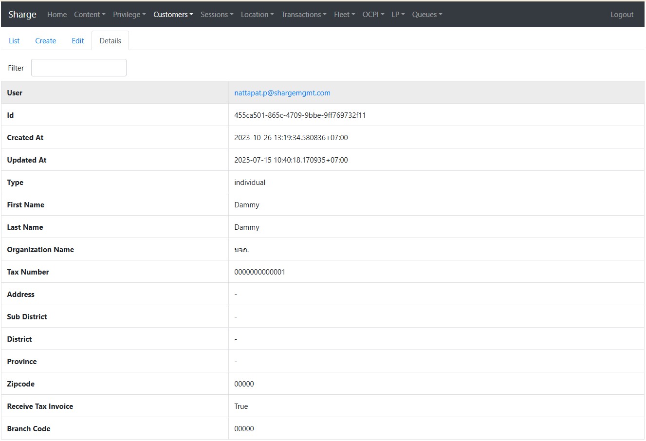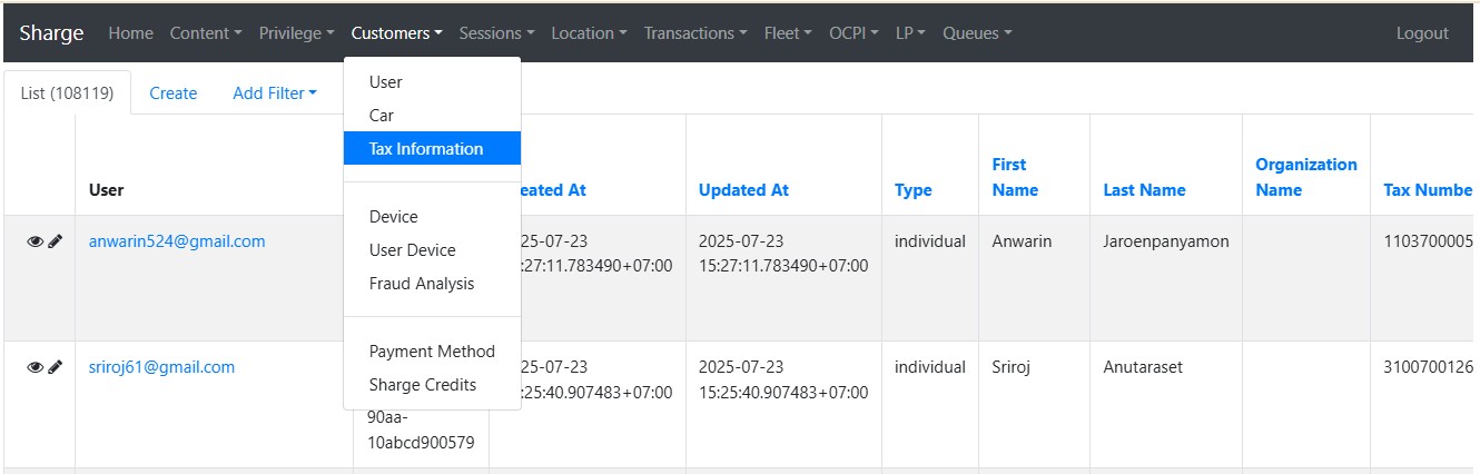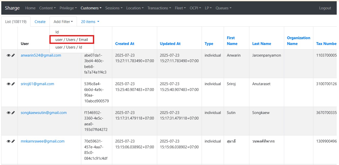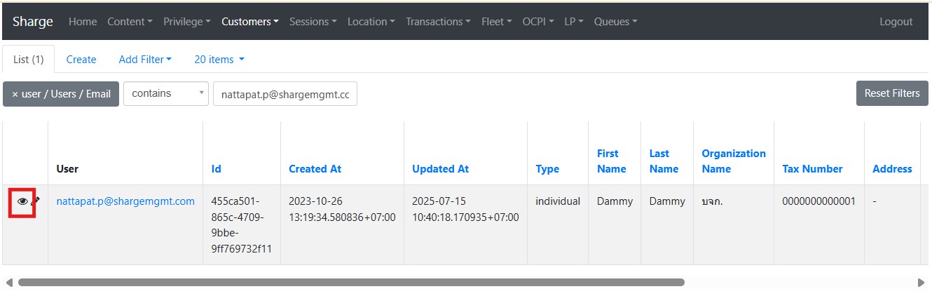 ตรวจสอบข้อมูลที่ลูกค้าระบุเพื่อออกใบเสร็จรับเงิน/ใบกำกับภาษี โดยการนำ Email เพื่อค้นหาข้อมูล